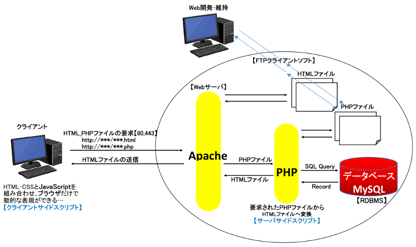 Webサーバー[Apache]、データベース[MySQL]、プログラム[PHP]、DB管理ツール[phpMyAdmin]が準備されているXAMPP(MAMP)で下準備(^^♪
